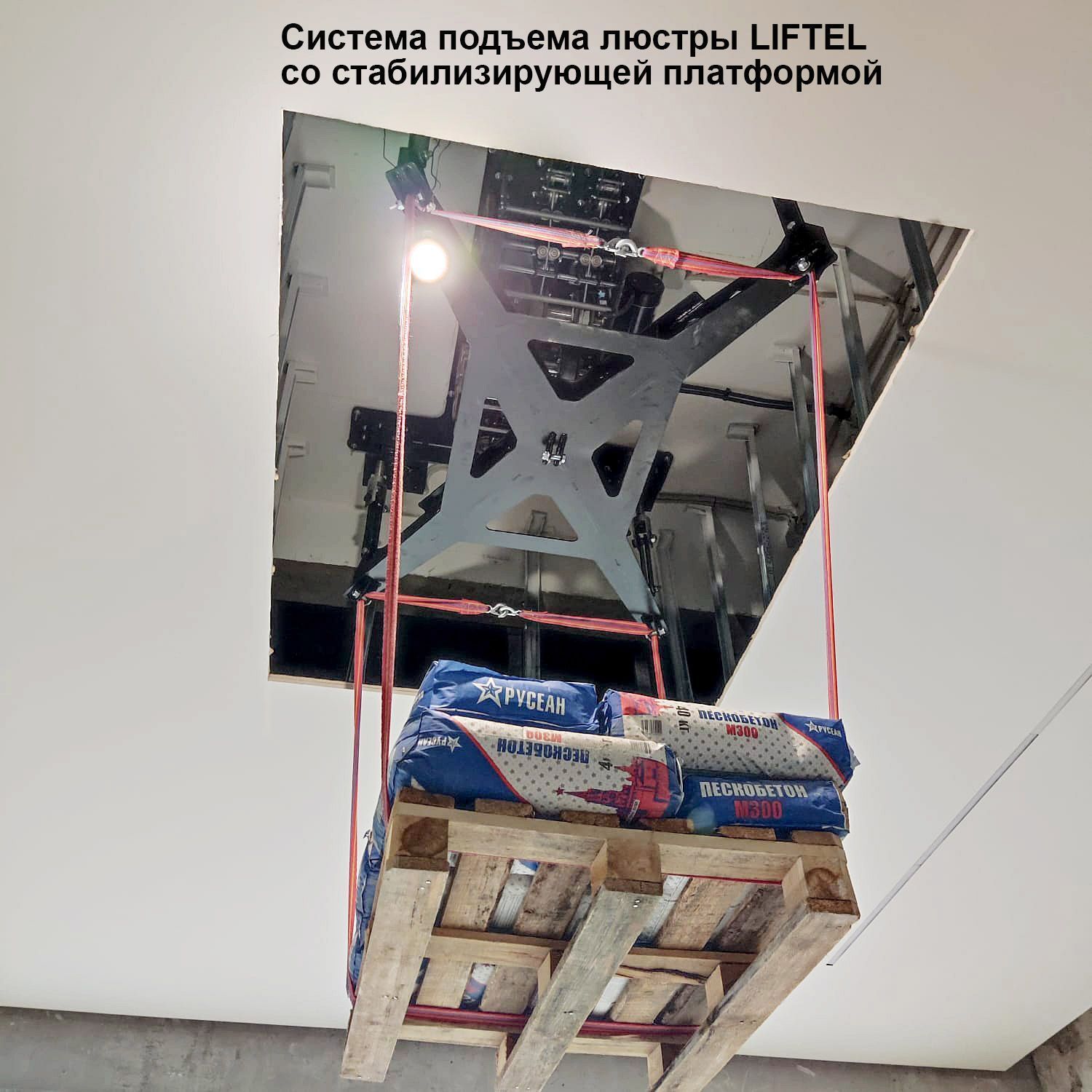 Система подъема люстры со стабилизирующей платформой