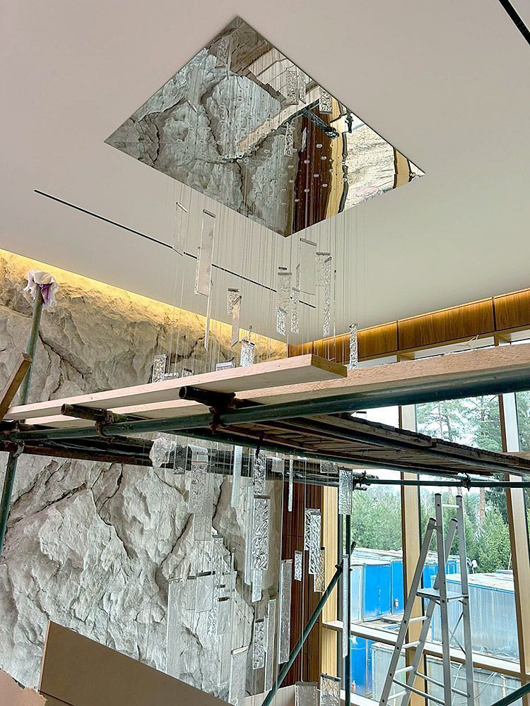 Система подъема люстры на 4х тросах. Барвиха.